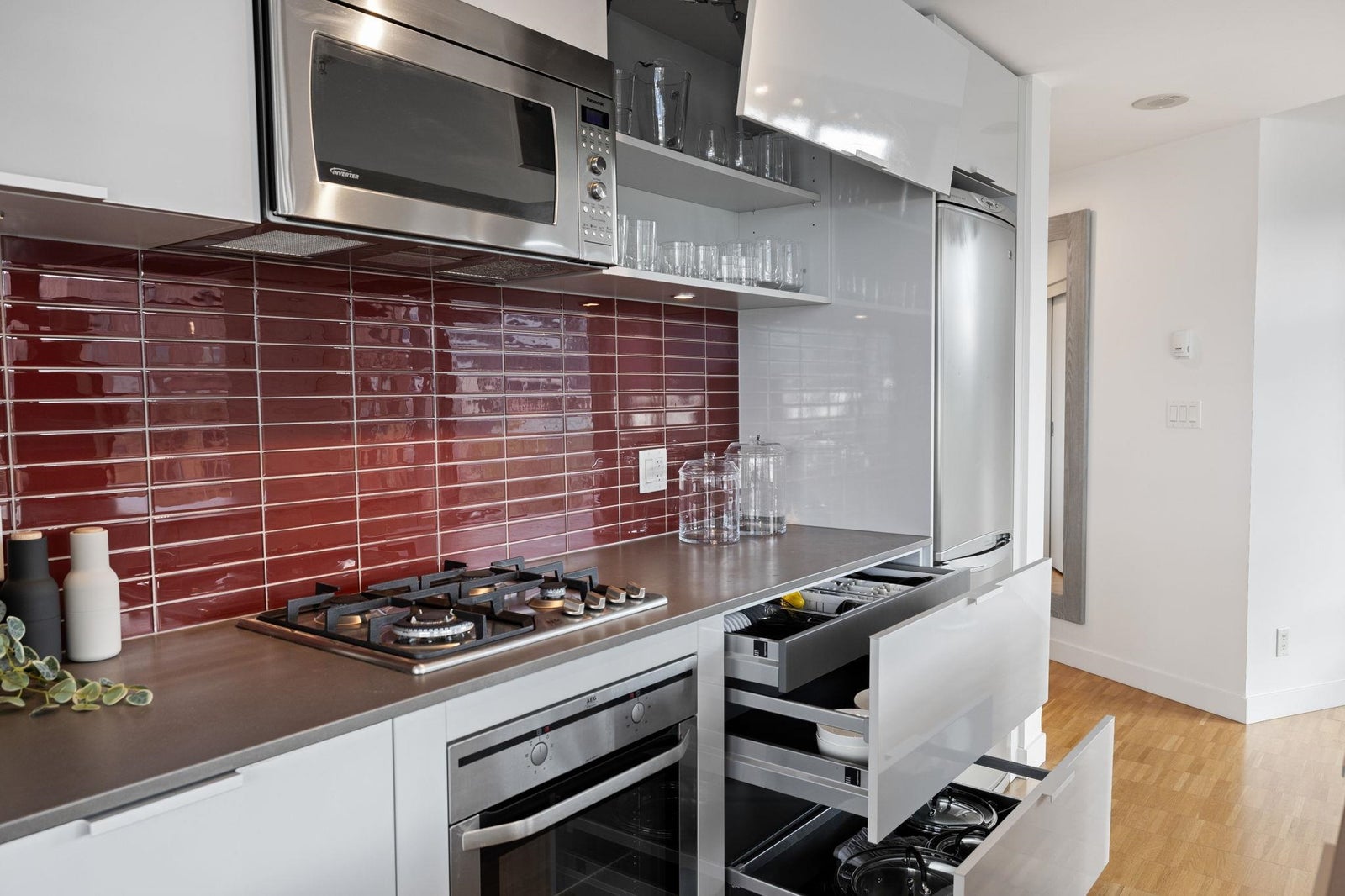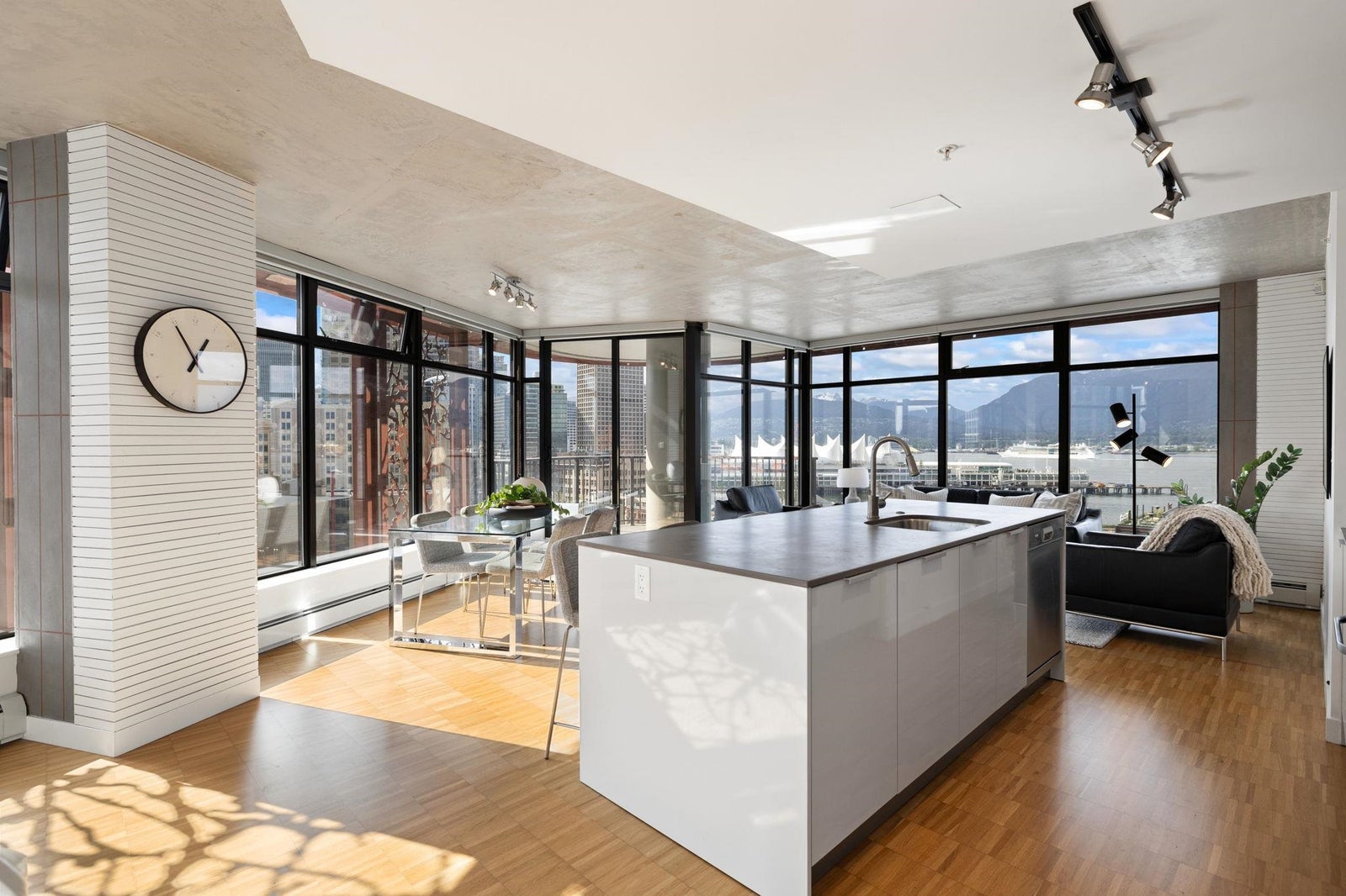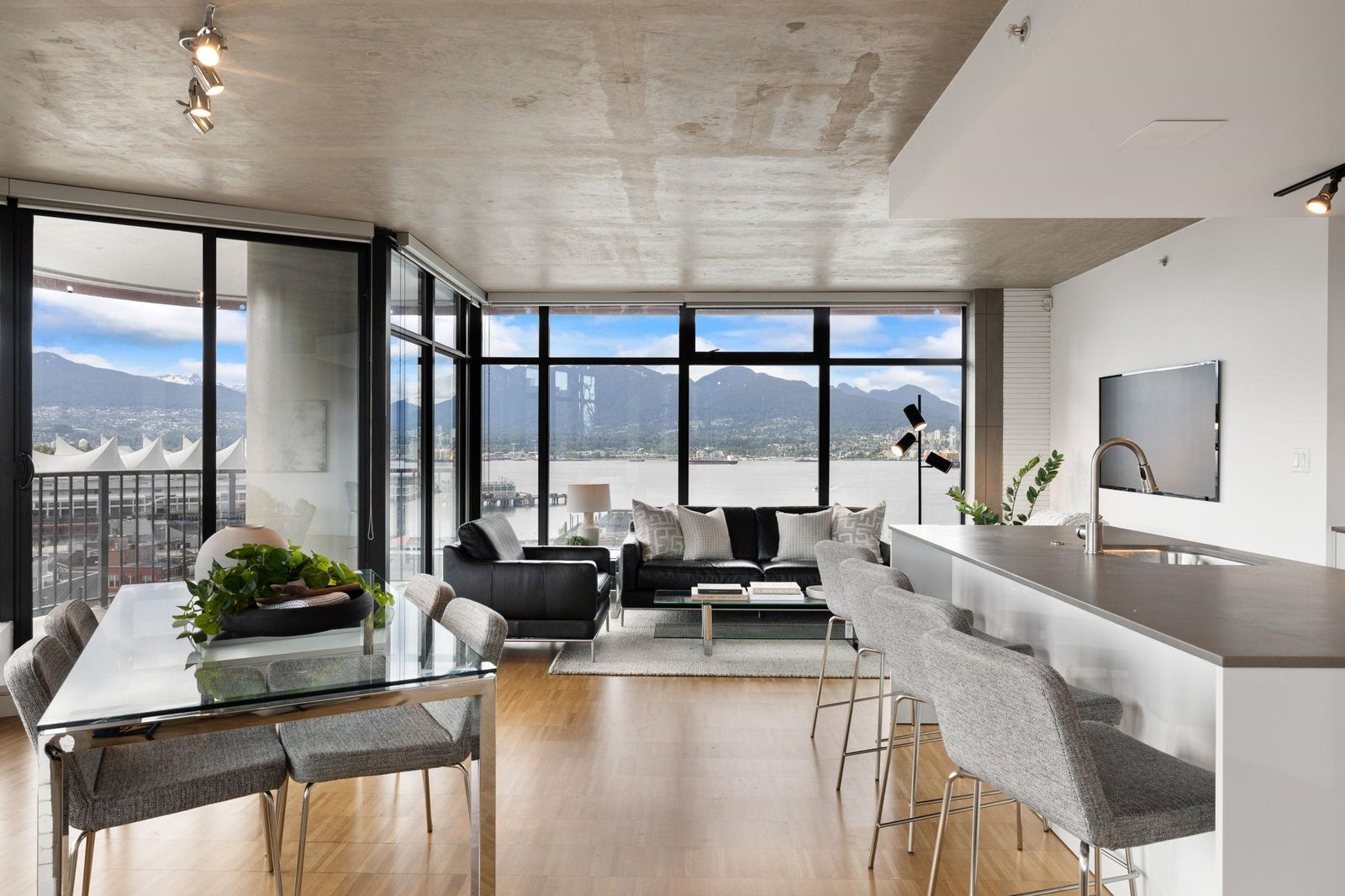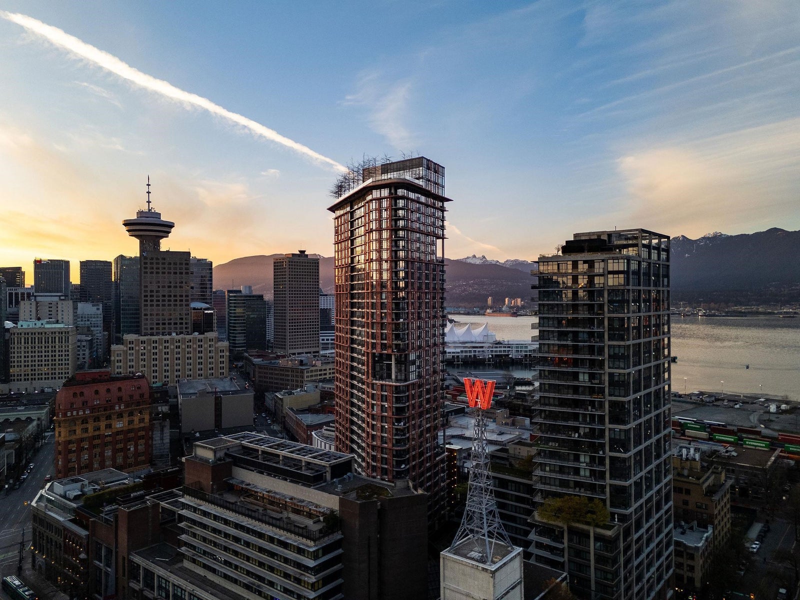 Ready-to-go! This totally Turn-Key luxury North/West/South-exposed 2BR/2Bath 1158sf condo @ iconic Woodwards building with breathtaking wraparound views of City, Ocean & N.Shore Mtns comes fully-furnished and ready to live-in or rent-out, complete w/fully stocked cabinets of quality dishes, glassware, cutlery & cookware. Stylish modern finishings throughout, spacious room sizes, upscale kitch, spa-like baths & a custom built-in California Closets Murphy bed in 2nd bdrm. Nestled in Historic Gastown & steps to the best restaurants, seawall & downtown. Escape to the expansive Club W rooftop w/incredible 360° views - soak in the hot tub, play some pool or hit the gym! Strata fee incl High-Speed Internet, Heat, Gas, HW, 24hr concierge + live-in bldg manager! PLUS 2 PARKING within the building.
