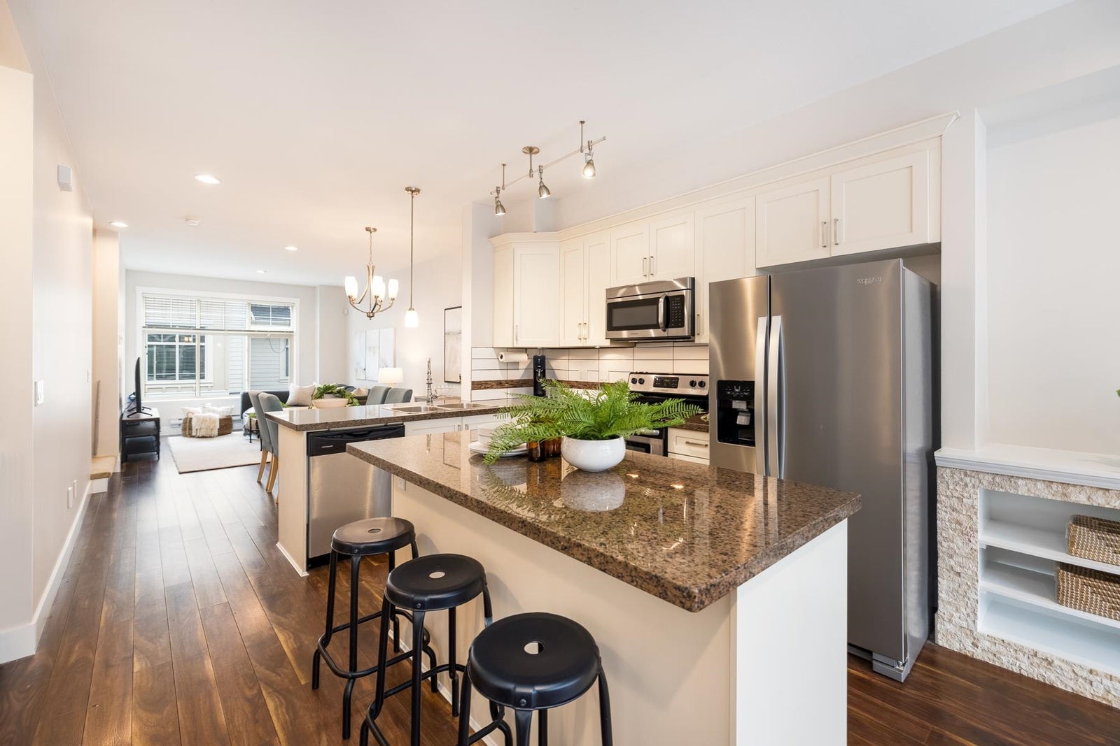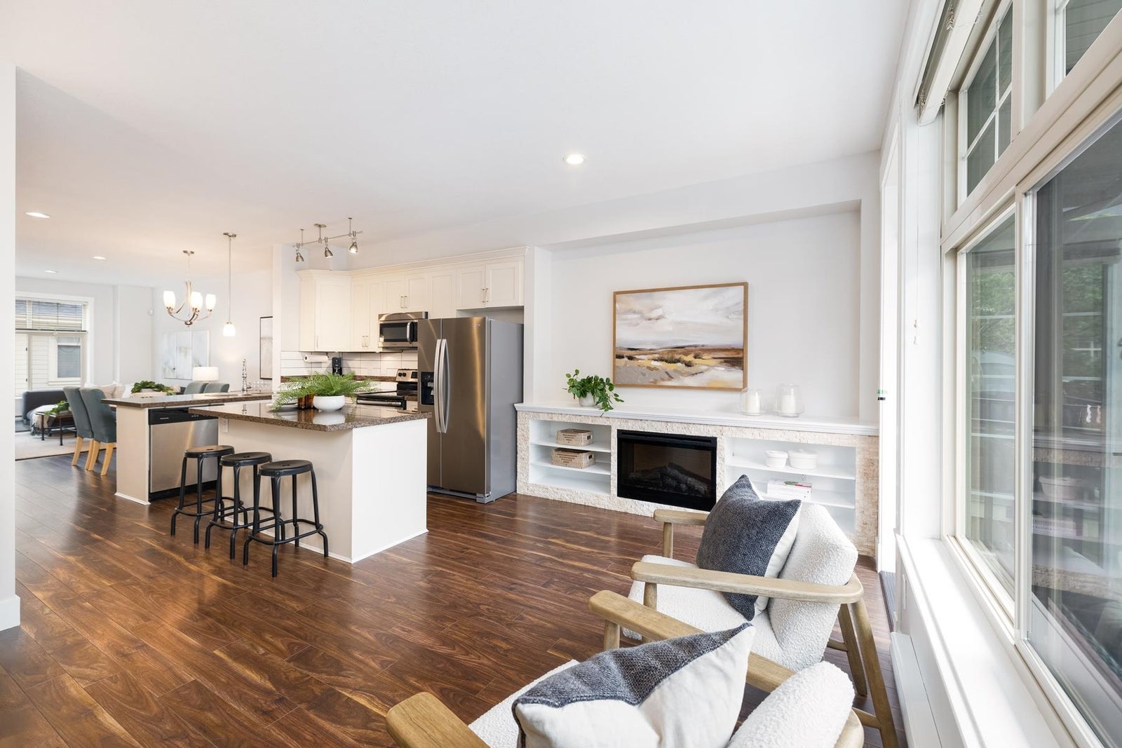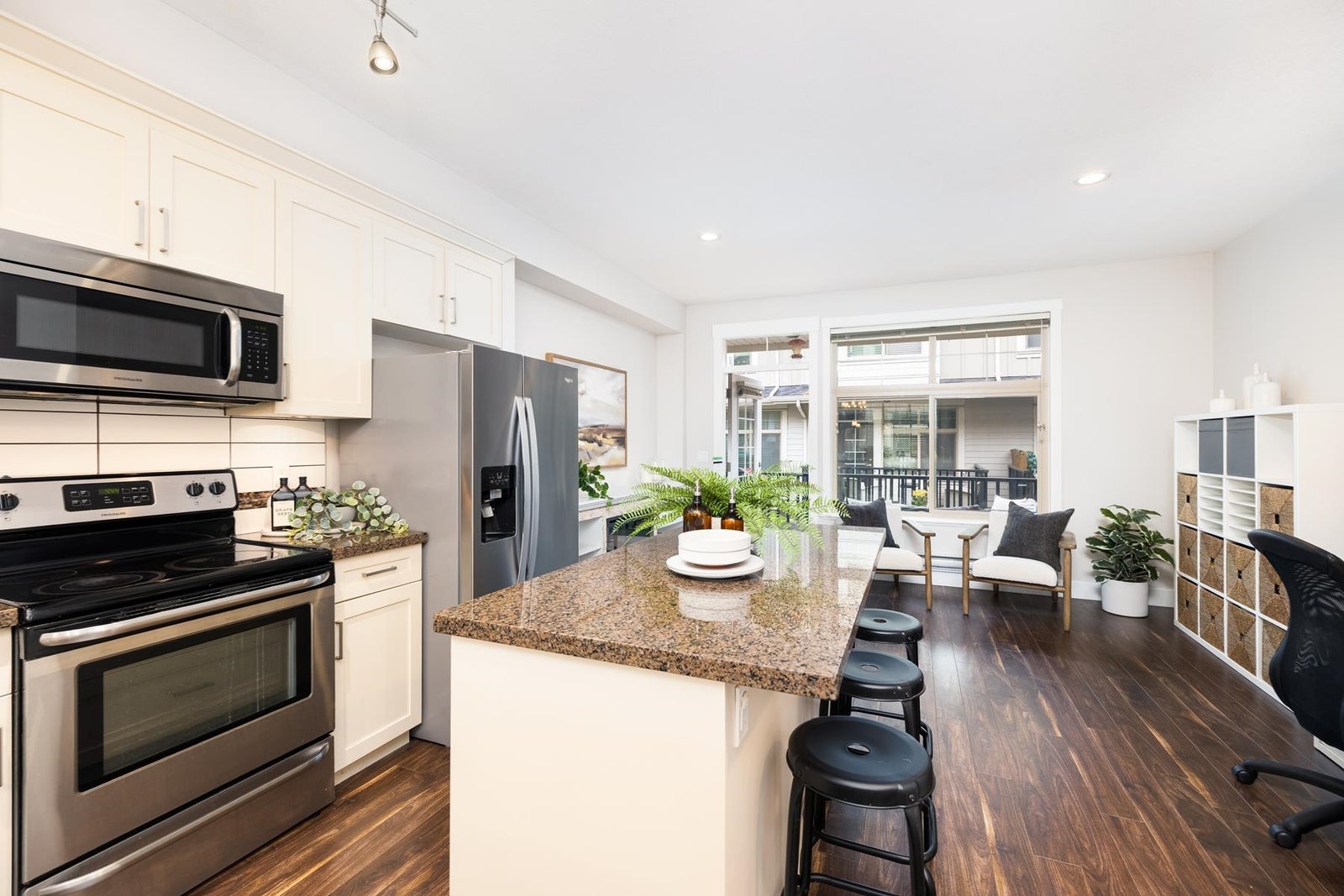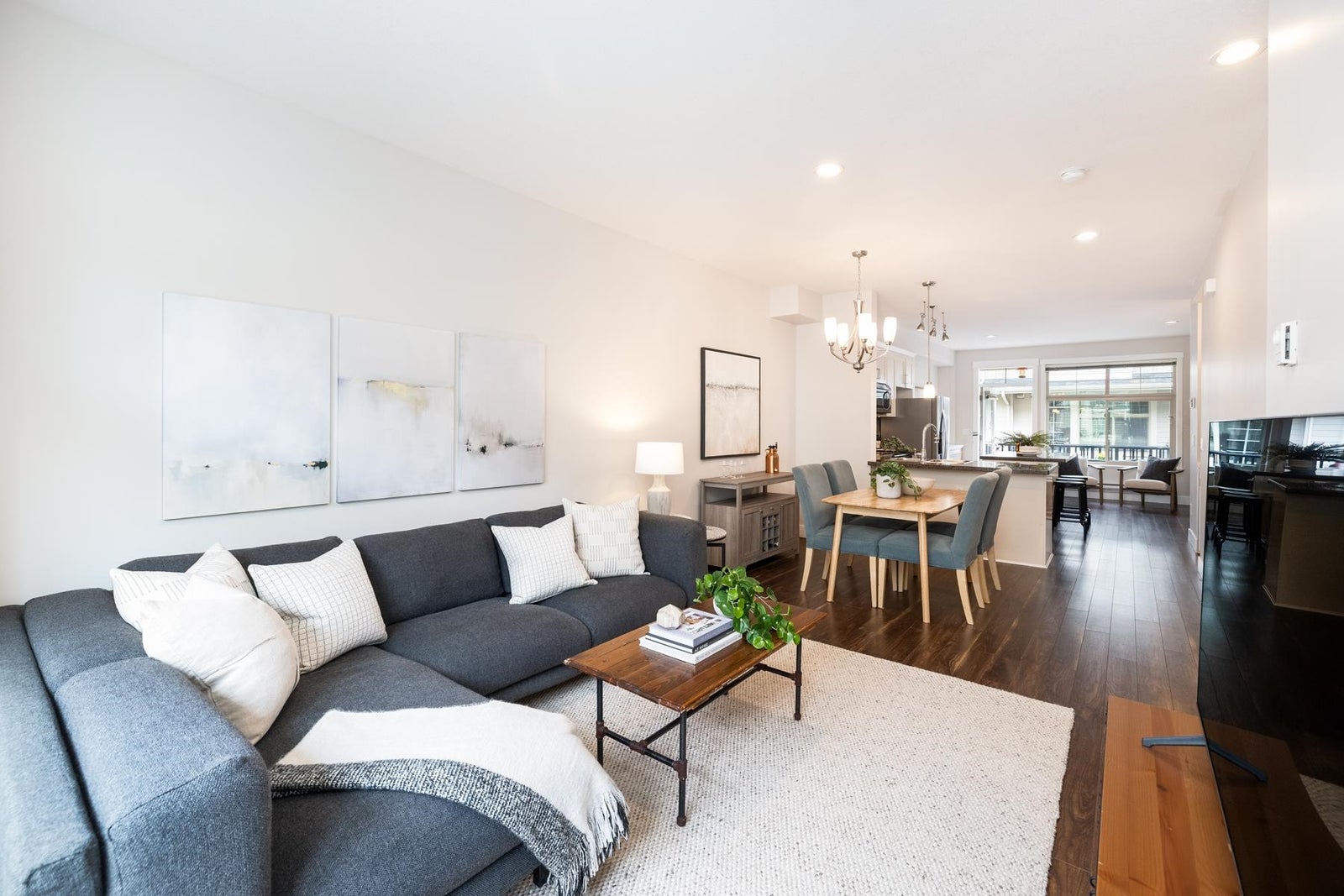 SOLD in just 9 days in COMPETING OFFERS! Welcome to this warm family-friendly community called Uptown, nestled in a quiet part of Clayton, away from all busy roads, yet close to everything & just a short walk to new Maddaugh Elementary. This spacious 1525sf 3BR/2.5 bath townhouse offers so much. Nicely positioned in the complex, this home offers a spacious sunny south facing back deck, overlooking your fully fenced yard below. 9' ceils on main, open kitch w/island, granite counters, stainless appl's, electric f/p w/built-in shelving, & convenient powder rm. Oversized double tandem garage w/built-in work-bench & loads of extra storage space. Plus EV Level 2 charging outlet! Low maint complex w/hardiboard siding & vinyl fencing & amenities incl. playground, clubhouse, exercise centre & guest suite.