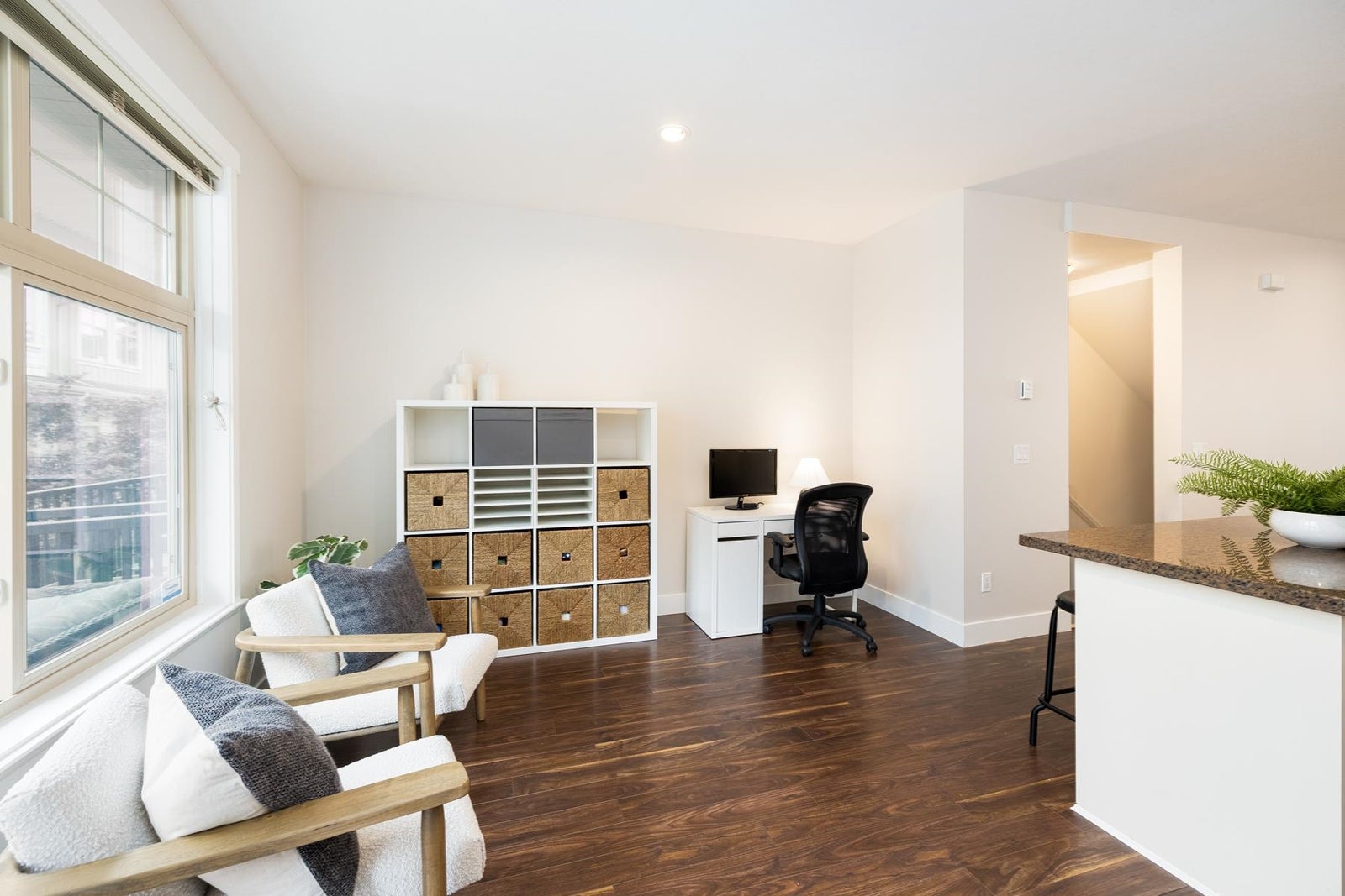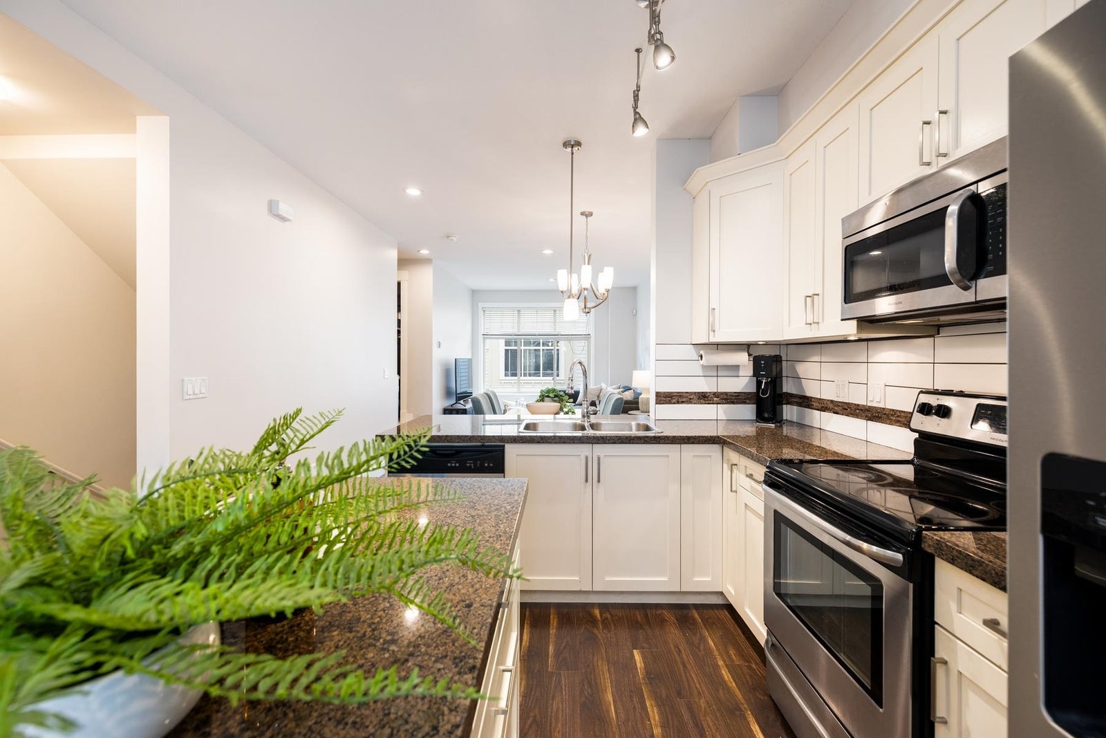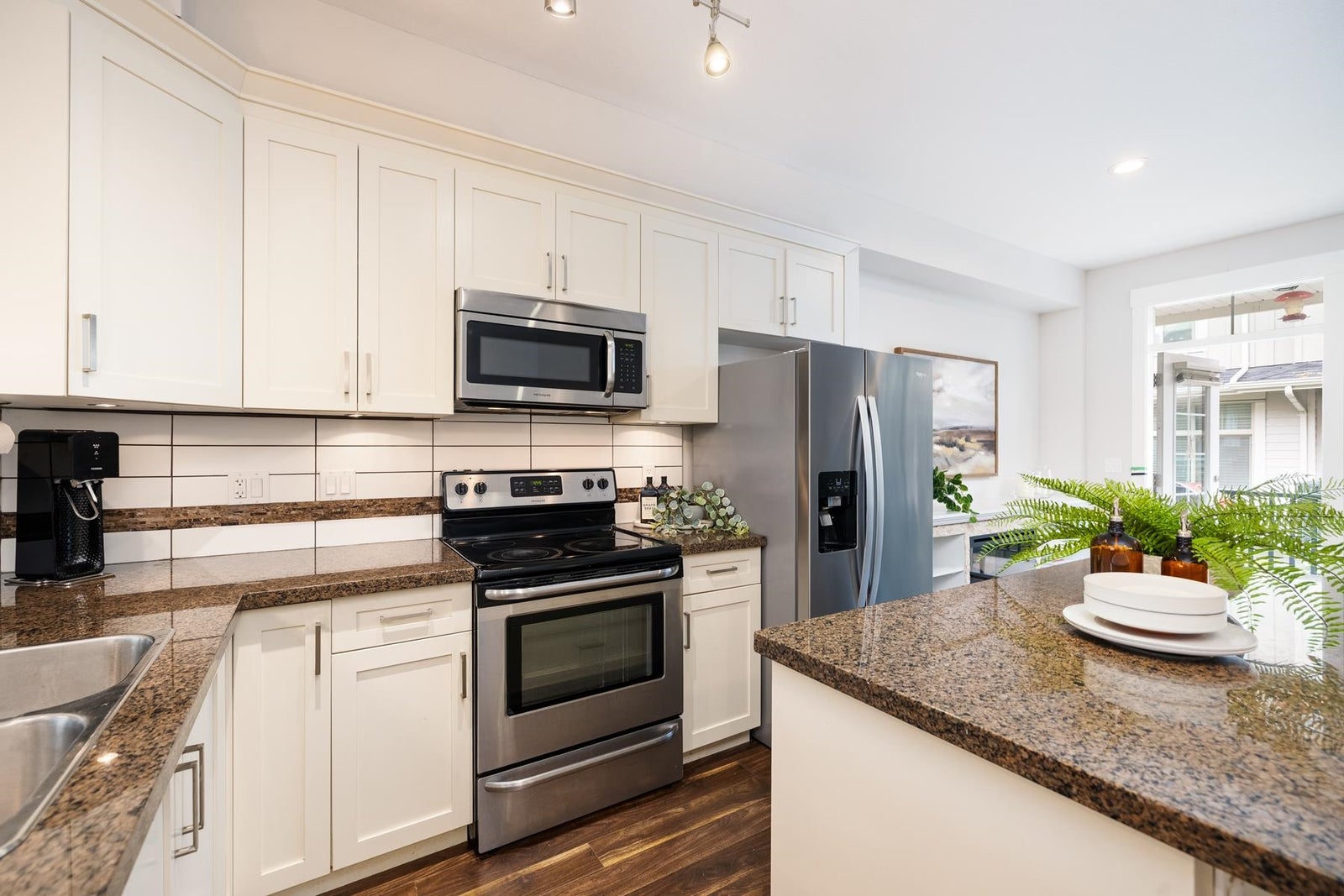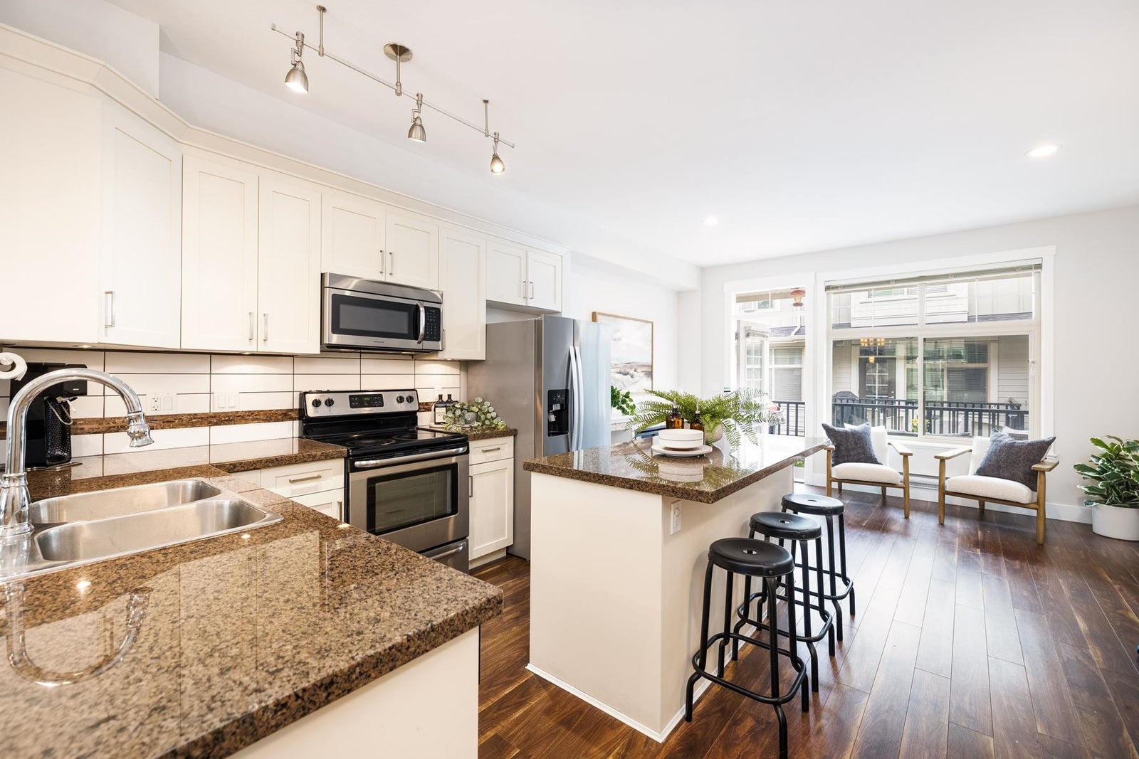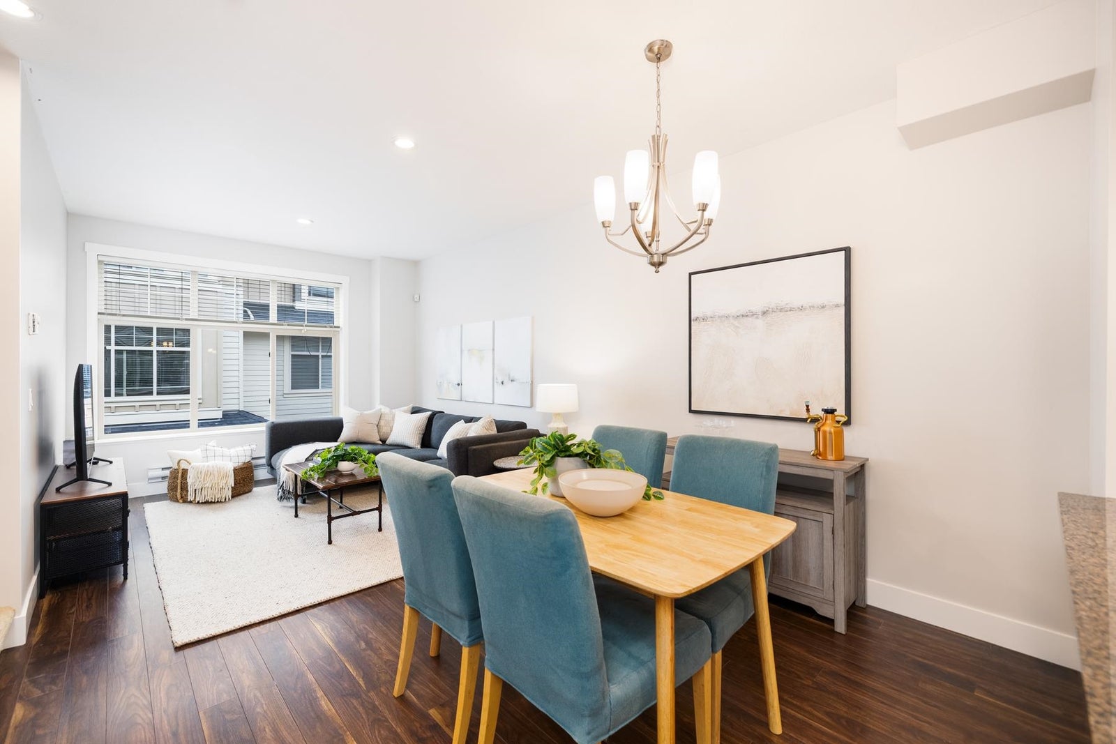 SOLD in just 9 days in COMPETING OFFERS! Welcome to this warm family-friendly community called Uptown, nestled in a quiet part of Clayton, away from all busy roads, yet close to everything & just a short walk to new Maddaugh Elementary. This spacious 1525sf 3BR/2.5 bath townhouse offers so much. Nicely positioned in the complex, this home offers a spacious sunny south facing back deck, overlooking your fully fenced yard below. 9' ceils on main, open kitch w/island, granite counters, stainless appl's, electric f/p w/built-in shelving, & convenient powder rm. Oversized double tandem garage w/built-in work-bench & loads of extra storage space. Plus EV Level 2 charging outlet! Low maint complex w/hardiboard siding & vinyl fencing & amenities incl. playground, clubhouse, exercise centre & guest suite.