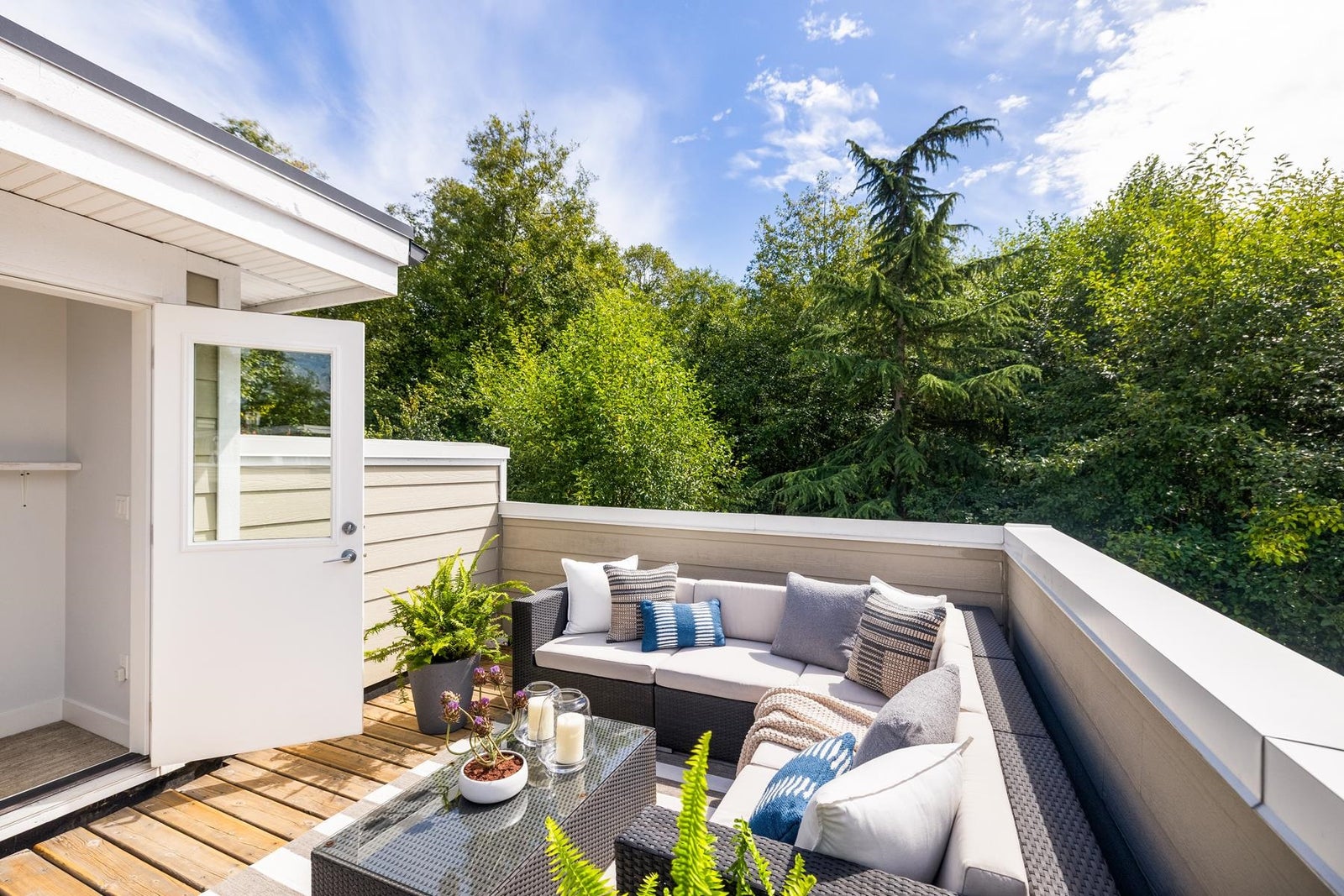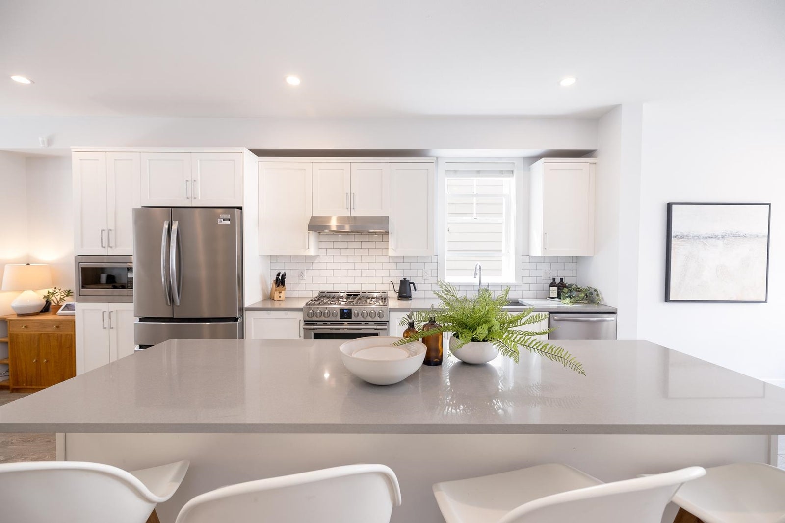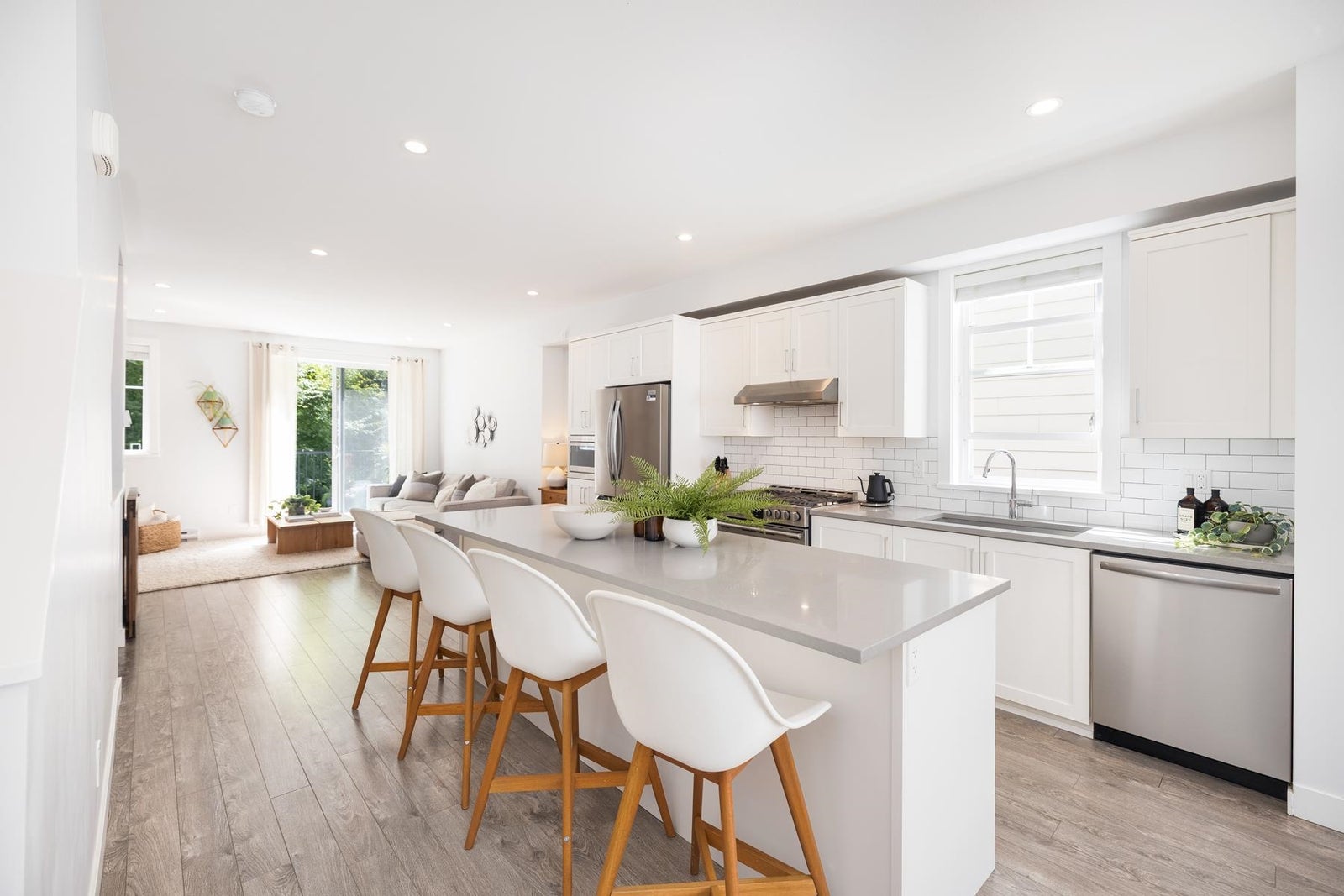 SOLD in JUST 7 days in COMPETING OFFERS! Welcome to The Woods by Gramercy. Check out this rare 3-lvl end-unit TH tucked in a quiet, forested pocket of Grandview, offering 3BRs (+ bonus studio on ground lvl w/sep entrance) & 1754sf of well-designed space, feat. 9' ceils & laminate flrs on main, quartz counters & quality SS appl's. Enjoy a 400+sf sunny roof deck (perf for entertaining, hosting BBQs & all-around summer lounging) + a private south-facing balc. Located in a quieter, back section of the complex, this home offers great privacy & safety for families, backs onto protected green space & the main-lvl studio is ideal for live/work. Dbl tandem garage w/epoxy flrs & extra storage. Clubhouse avail for private events. Close to Morgan Crossing, Hwy 99, beaches & more. You’ll feel right at home here!