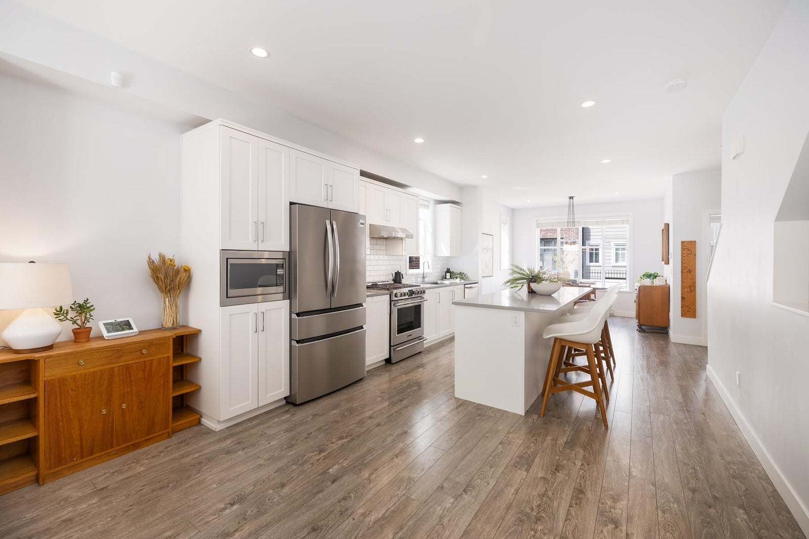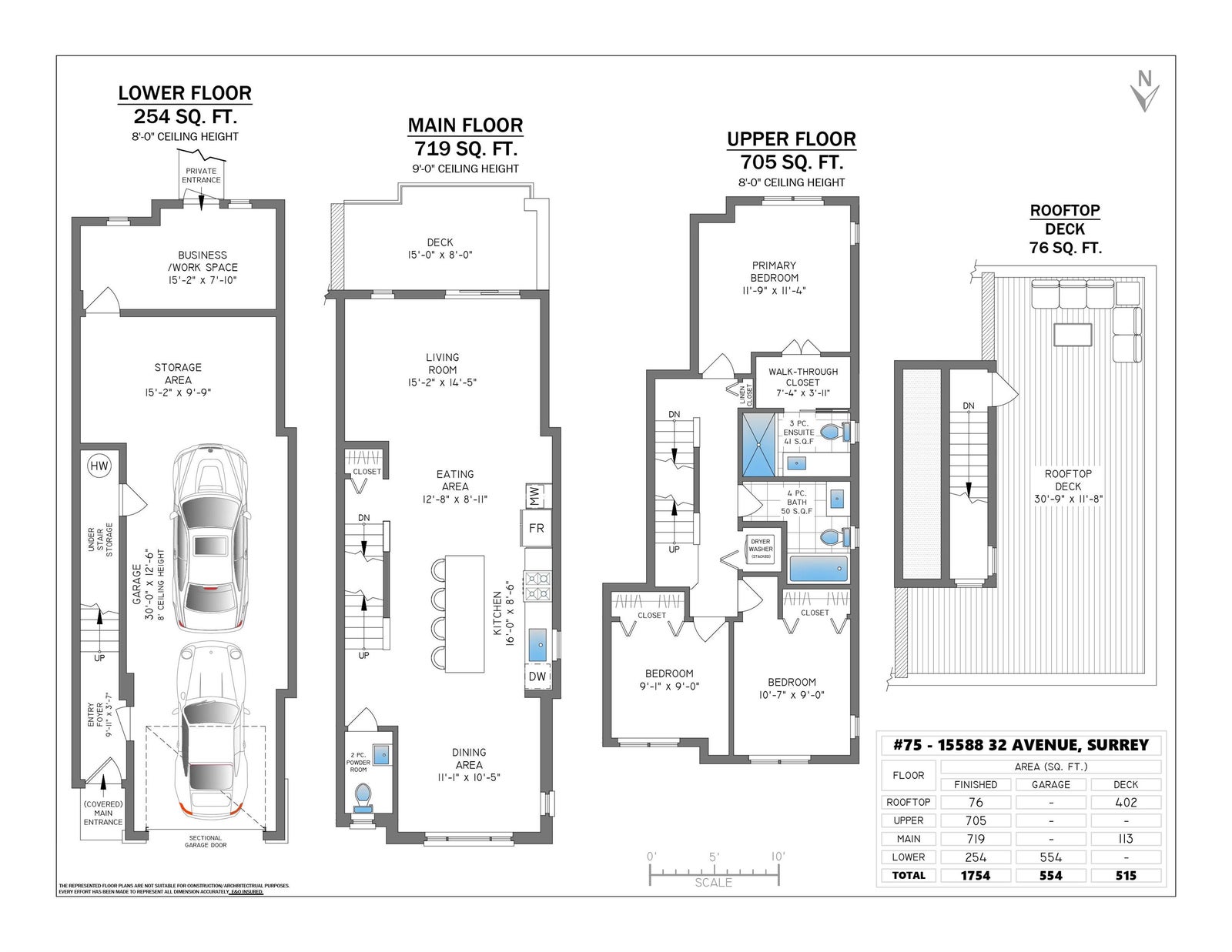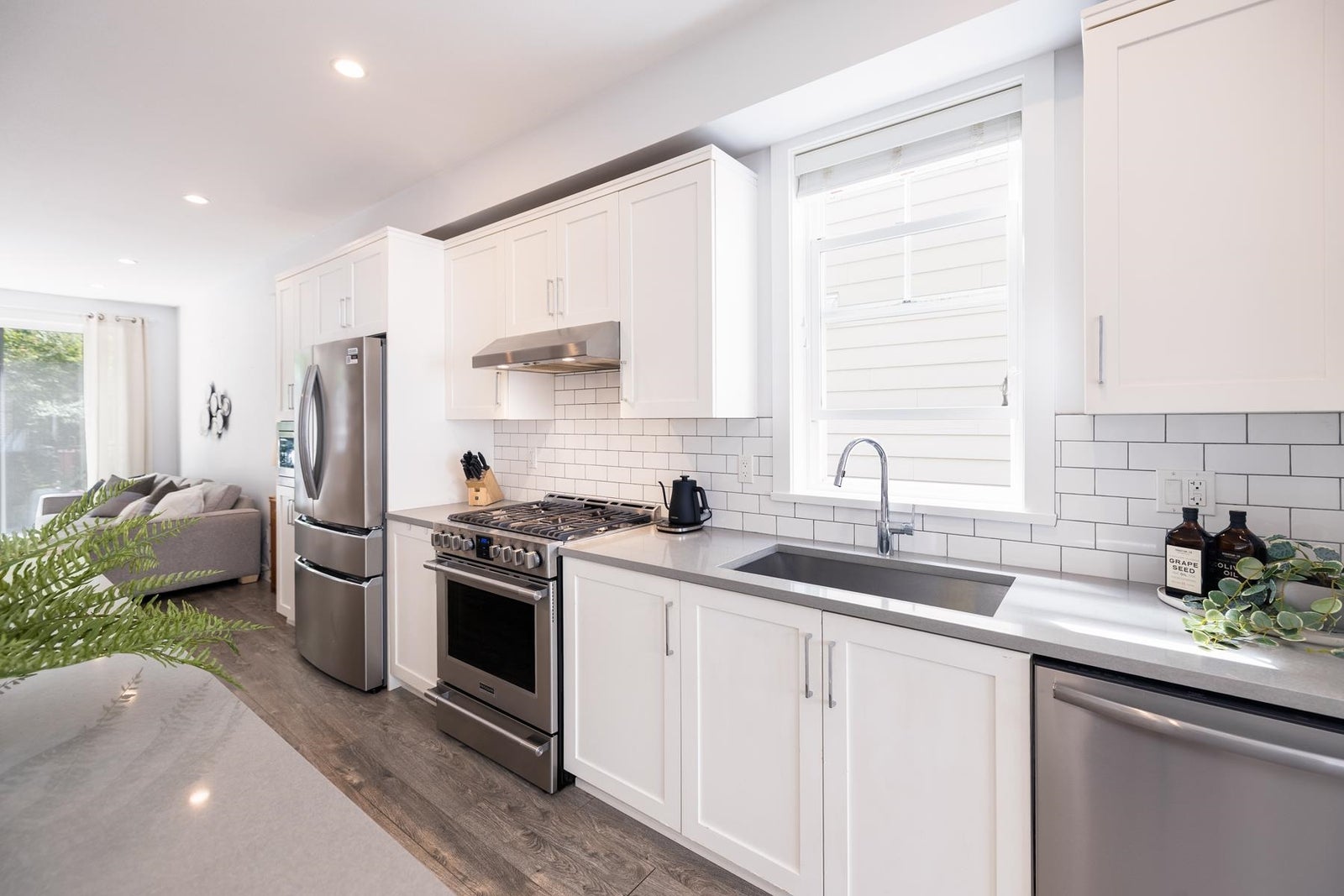 SOLD in JUST 7 days in COMPETING OFFERS! Welcome to The Woods by Gramercy. Check out this rare 3-lvl end-unit TH tucked in a quiet, forested pocket of Grandview, offering 3BRs (+ bonus studio on ground lvl w/sep entrance) & 1754sf of well-designed space, feat. 9' ceils & laminate flrs on main, quartz counters & quality SS appl's. Enjoy a 400+sf sunny roof deck (perf for entertaining, hosting BBQs & all-around summer lounging) + a private south-facing balc. Located in a quieter, back section of the complex, this home offers great privacy & safety for families, backs onto protected green space & the main-lvl studio is ideal for live/work. Dbl tandem garage w/epoxy flrs & extra storage. Clubhouse avail for private events. Close to Morgan Crossing, Hwy 99, beaches & more. You’ll feel right at home here!