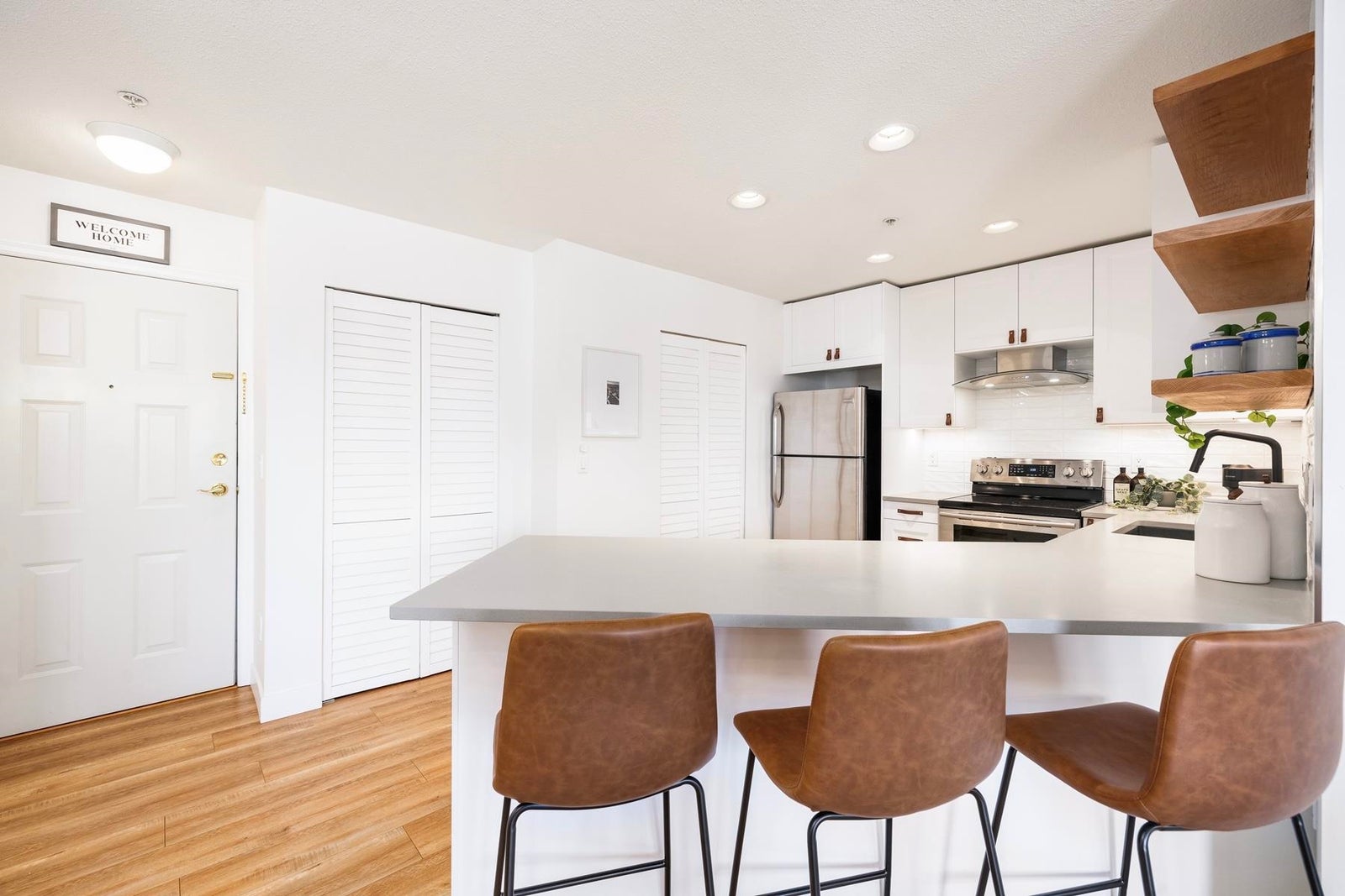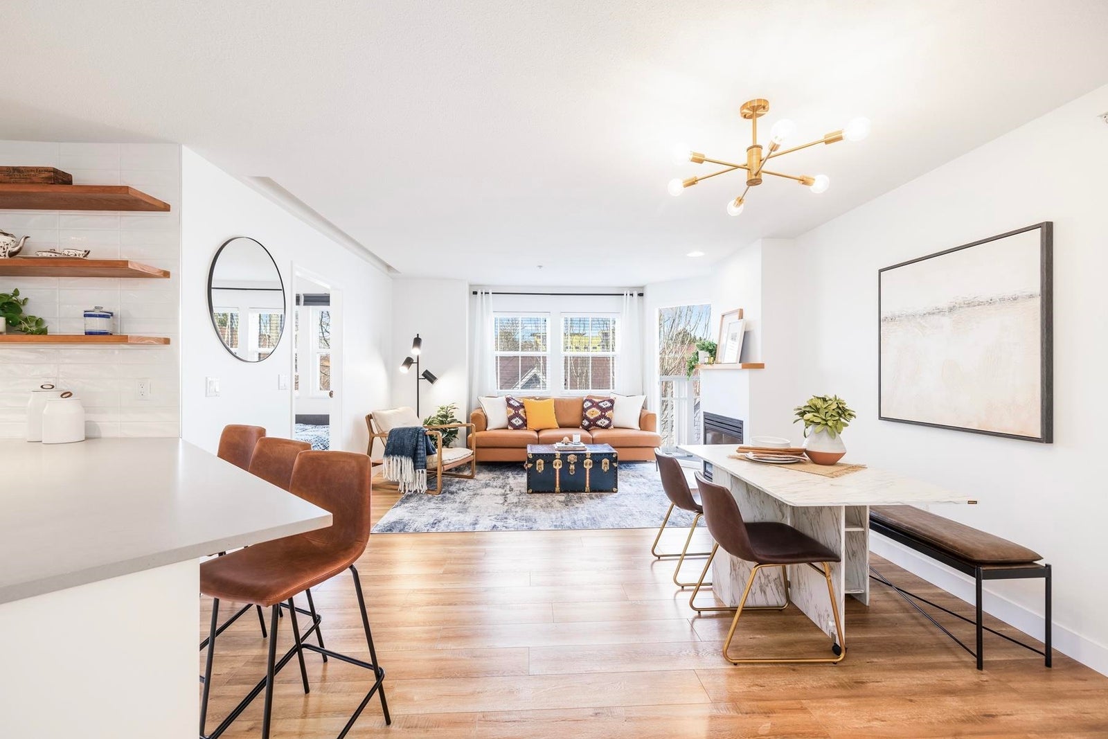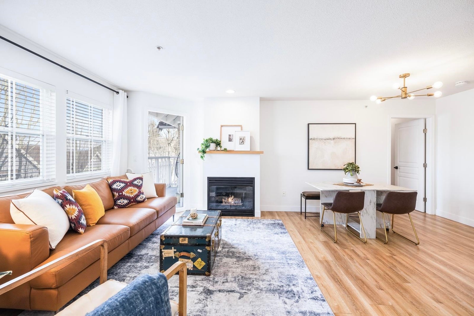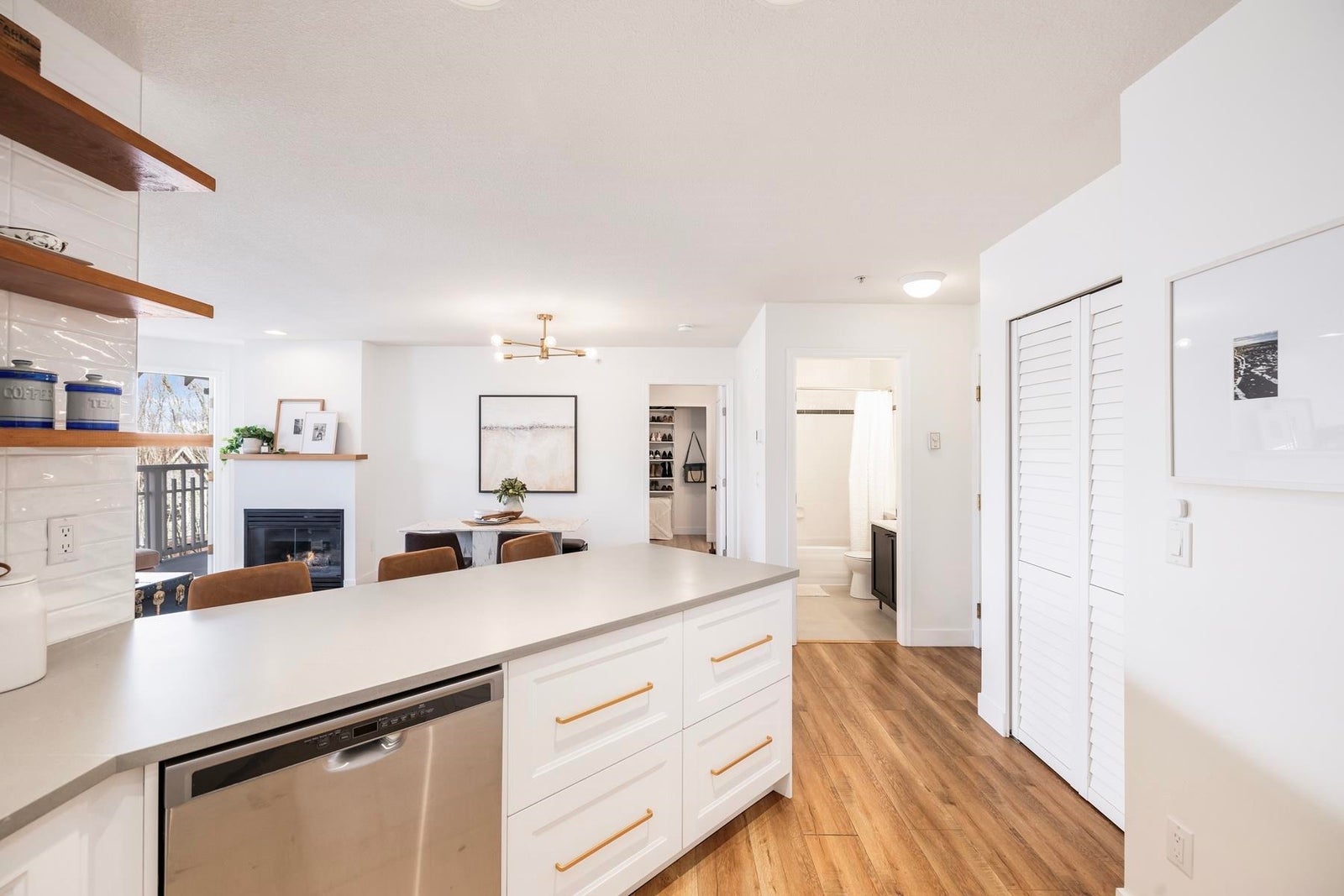 Your heart will skip a beat when you step inside this spacious & beautifully-reno'd 2BR/2Bath penthouse condo at "The Pillars", one of Tsawwassen's most sought-after complexes. Perched amongst the trees & peacefully tucked away at the quiet end of the complex, this bright open-concept corner home welcomes you immediately w/its brilliant floorplan & cute balc overlooking a row of adorable character townhomes. The quality reno & smart design details are apparent. Stunning new kitch w/Caesarstone counters, black undermount siligranit sink, leather cab pulls & floating wood shelves. Updated baths, floors, & black/brushed gold hardware & lighting touches throughout. Cozy gas f/p, radiant h/w heat, BBQ gas hookup & 1 secured pkg. Low maint fees incl. heat, h/w & gas. OPEN SUN MAR 22, 2-4pm.