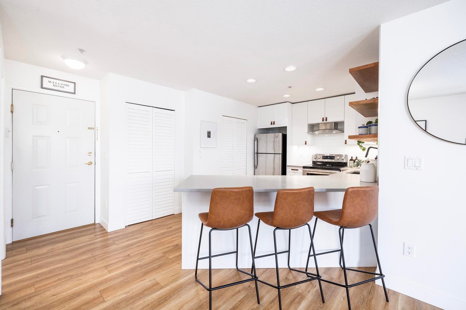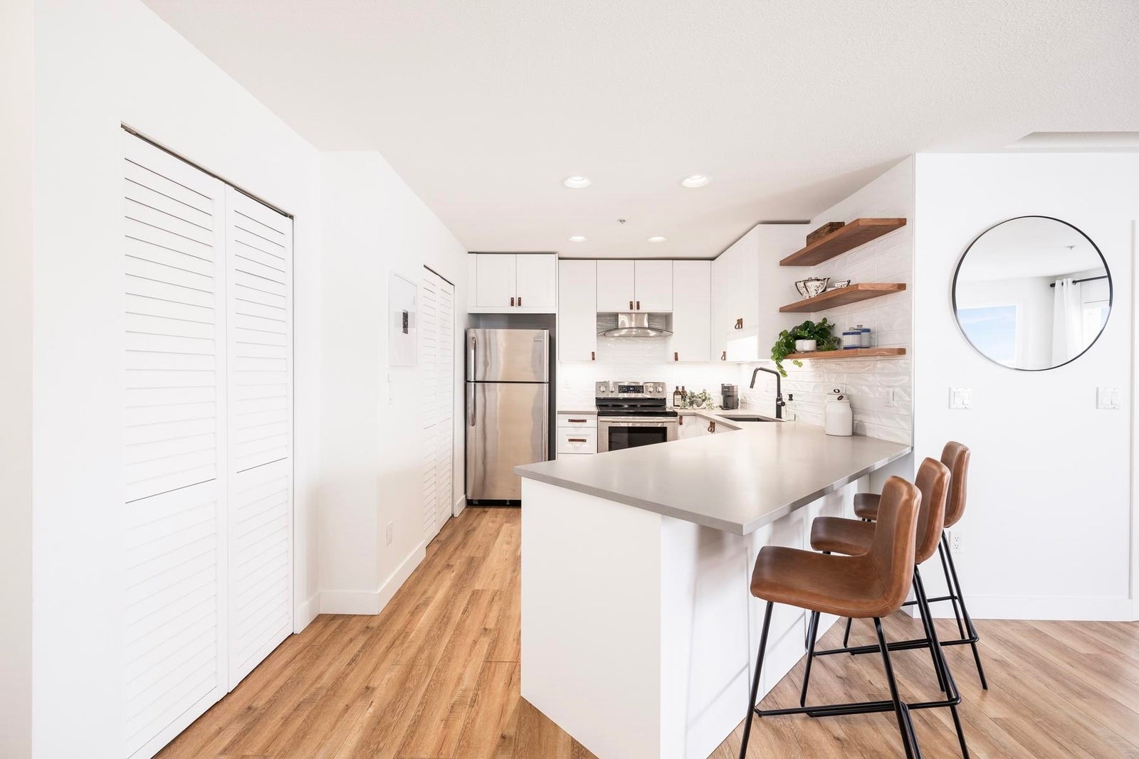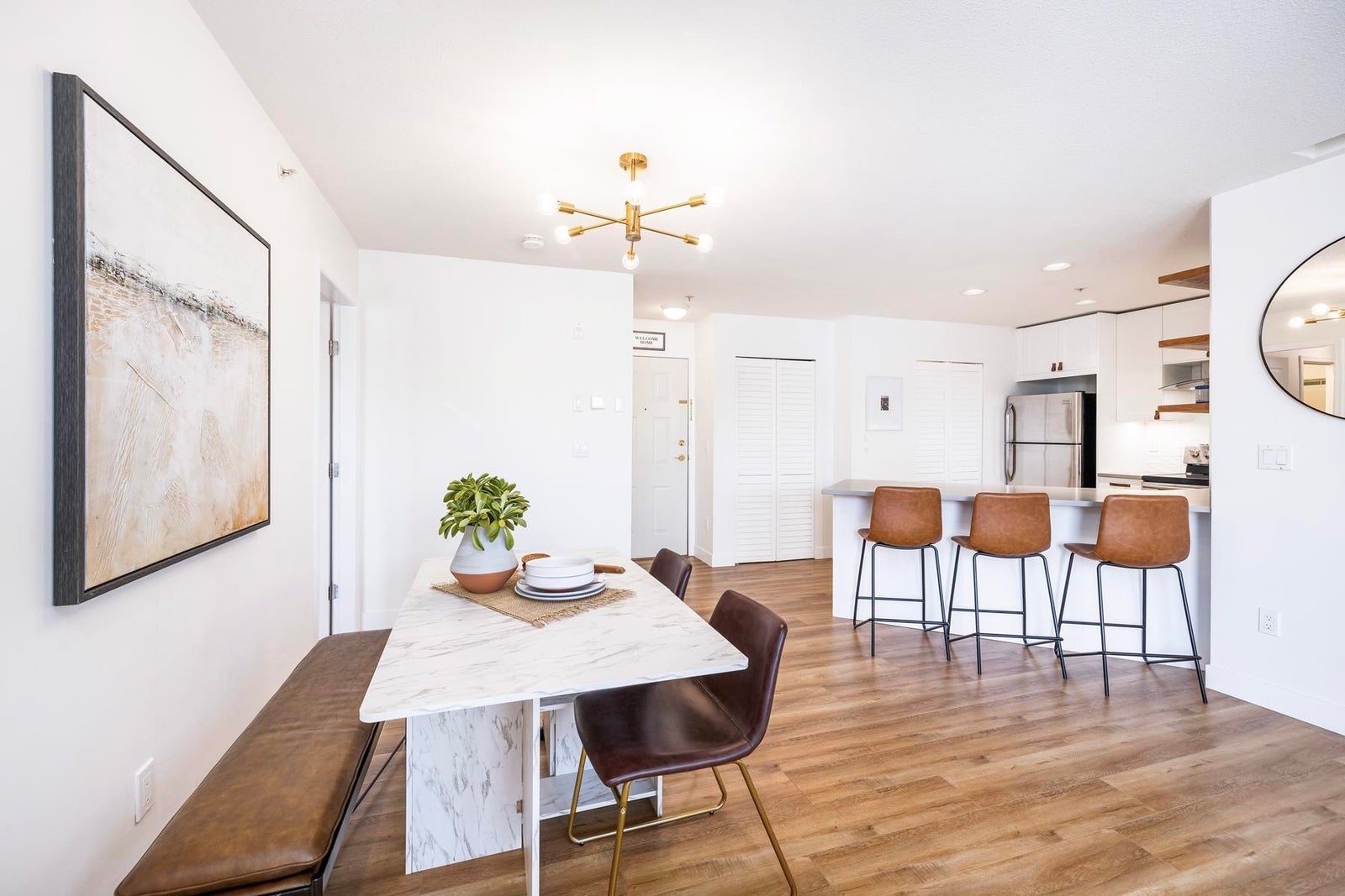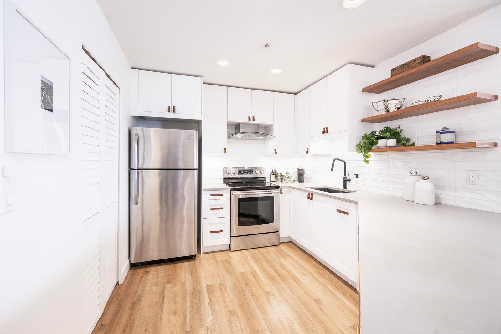 Your heart will skip a beat when you step inside this spacious & beautifully-reno'd 2BR/2Bath penthouse condo at "The Pillars", one of Tsawwassen's most sought-after complexes. Perched amongst the trees & peacefully tucked away at the quiet end of the complex, this bright open-concept corner home welcomes you immediately w/its brilliant floorplan & cute balc overlooking a row of adorable character townhomes. The quality reno & smart design details are apparent. Stunning new kitch w/Caesarstone counters, black undermount siligranit sink, leather cab pulls & floating wood shelves. Updated baths, floors, & black/brushed gold hardware & lighting touches throughout. Cozy gas f/p, radiant h/w heat, BBQ gas hookup & 1 secured pkg. Low maint fees incl. heat, h/w & gas. OPEN SUN MAR 22, 2-4pm.