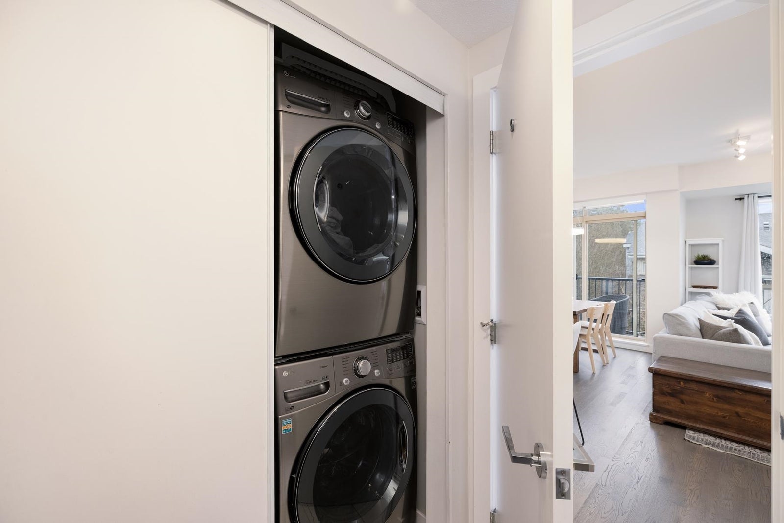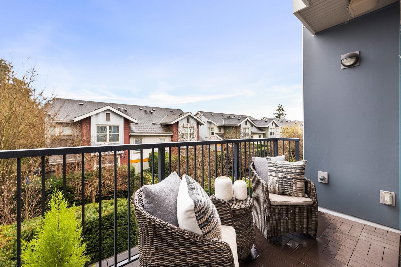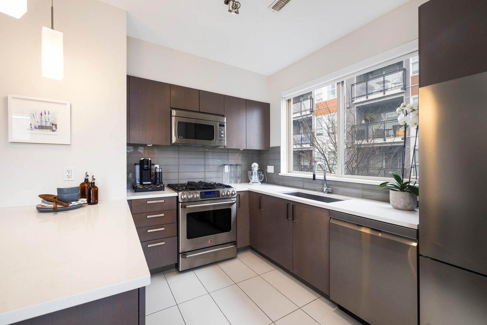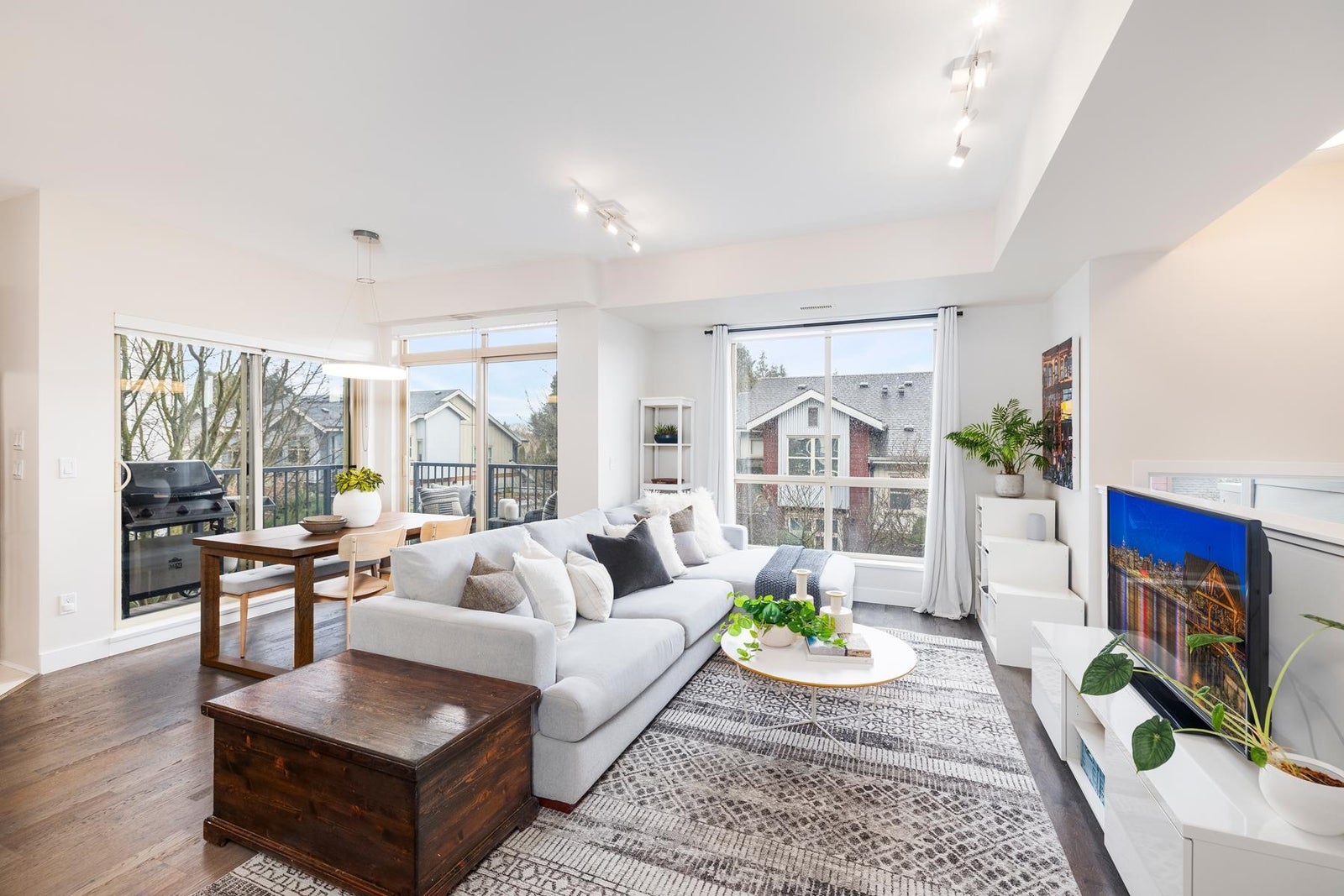 The one you've been waiting for! This premium upper-corner southeast-exposed 3BR/2.5bath 1248sf townhouse at Parc Riviera is flooded w/natural light & offers perhaps the best vantage point in this riverfront development. Quietly tucked away from street traffic, this modern & immac.-maintained 2-lvl home provides a peaceful outlook over beautiful treelined walking paths. Well-appointed design throughout, the main lvl feat's a generous entertaining space, lrg gourmet kitch w/quartz counters & picture window above the sink, powder rm, plus a sunny wraparound covered balc. 3BRs/2Baths up w/soaring vaulted ceils & a juliet balc. Geothermal heating/cooling, 2 pkg stalls, & resort-style amenties (incl. indoor pool, hot tub, sauna & fitness centre). OPEN SAT Mar.14, 3-5pm & SUN Mar.15, 12-2pm.