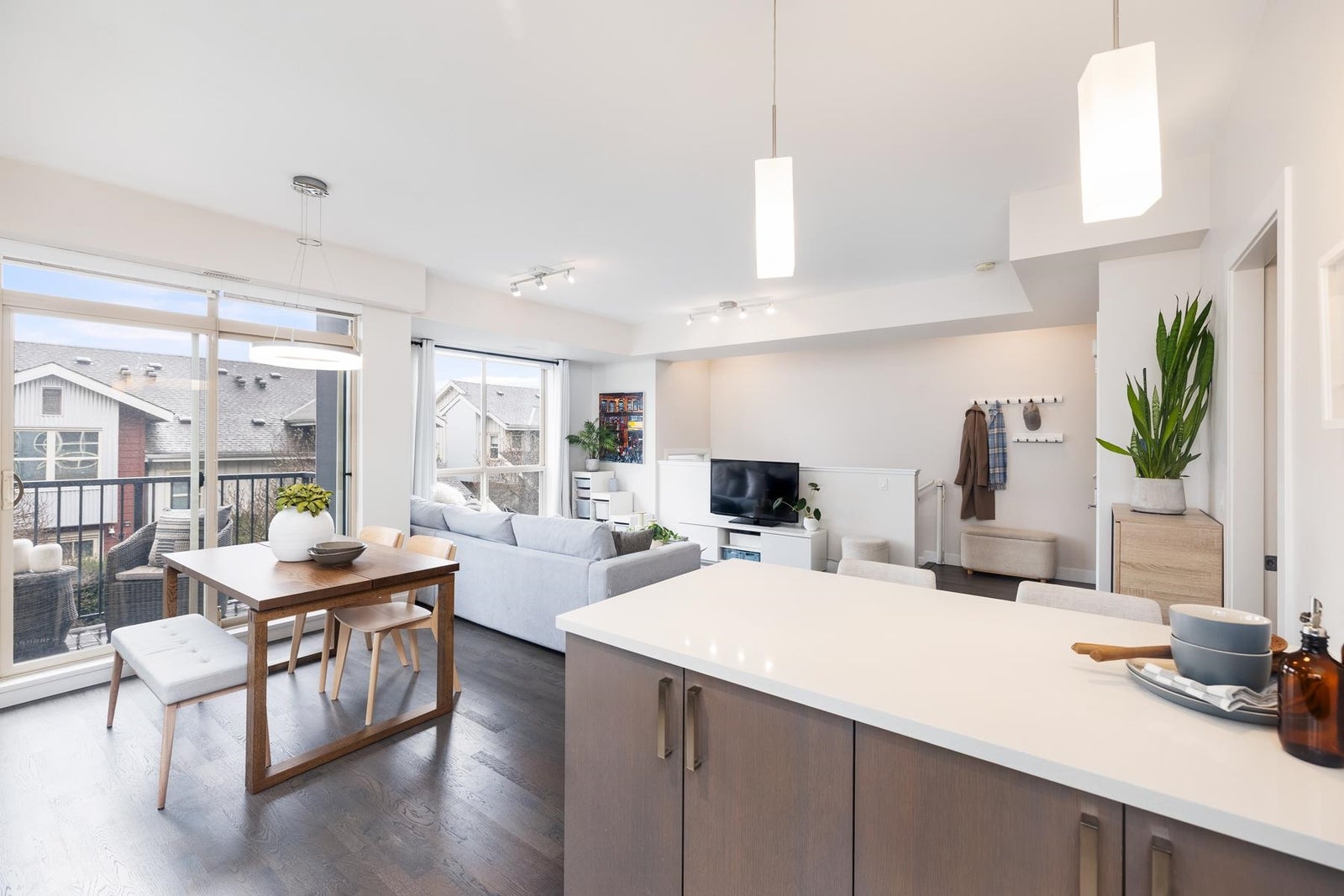 The one you've been waiting for! This premium upper-corner southeast-exposed 3BR/2.5bath 1247sf townhouse at Parc Riviera is flooded w/natural light & offers perhaps the best vantage point in this riverfront development. Quietly tucked away from street traffic, this modern & immac.-maintained 2-lvl home provides a peaceful outlook over beautiful treelined walking paths. Well-appointed design throughout, the main lvl feat's a generous entertaining space, lrg gourmet kitch w/quartz counters & picture window above the sink, powder rm, plus a sunny wraparound covered balc. 3BRs/2Baths up w/soaring vaulted ceils & a juliet balc. Geothermal heating/cooling, 2 pkg stalls, & resort-style amenities (incl. indoor pool, hot tub, sauna & fitness centre). OPEN SAT APR 25th, 1-2pm & SUN APR 26th, 2-4pm.